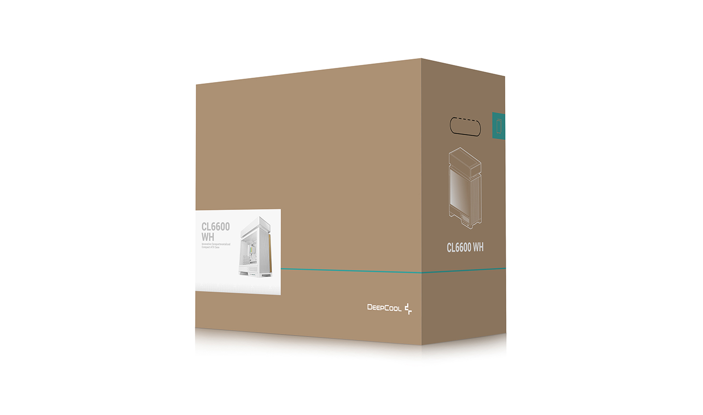 A fonte de alimentação é montada horizontalmente na parte frontal, com as conexões dos cabos voltadas para a parte traseira da placa-mãe.