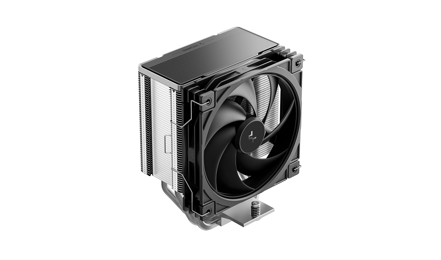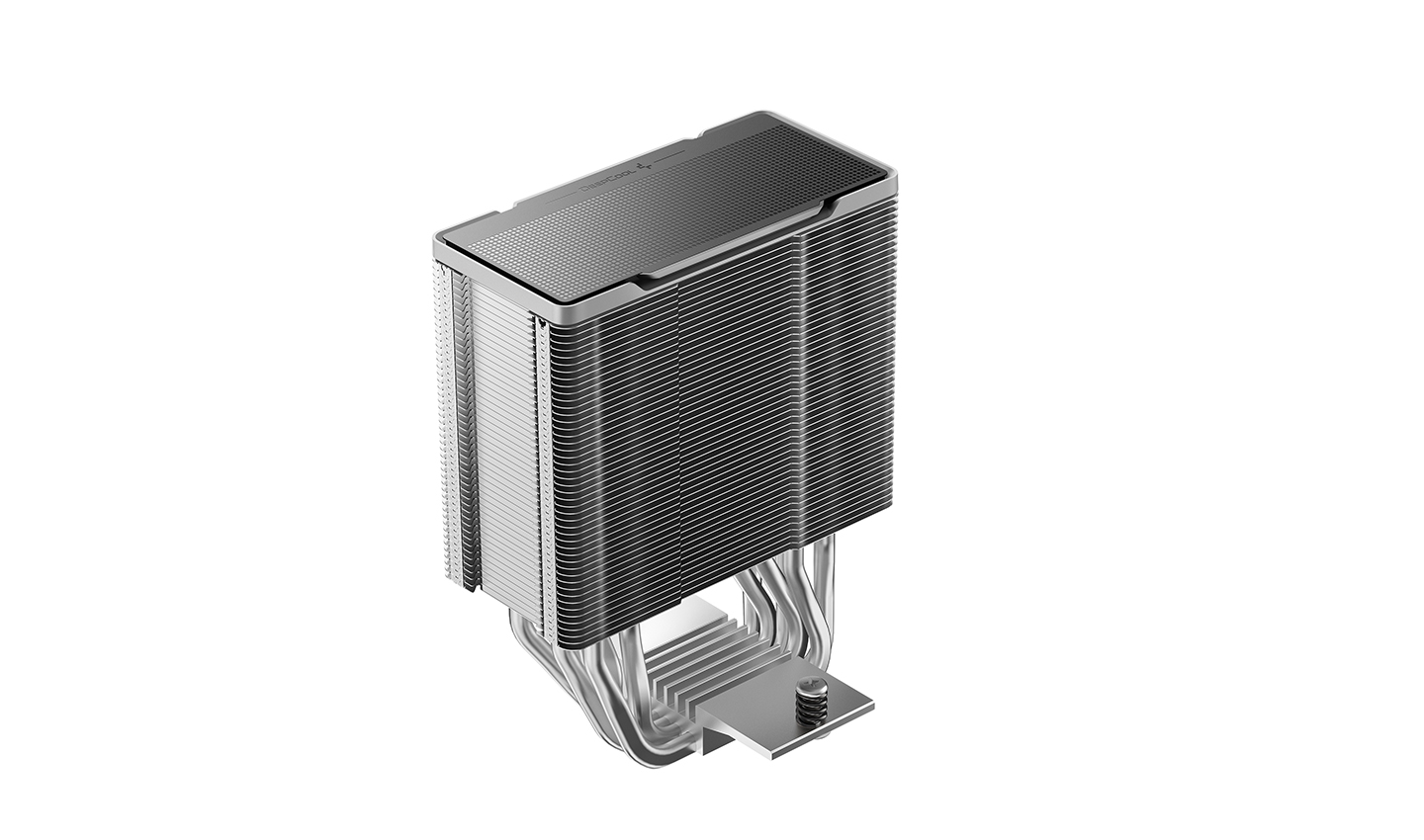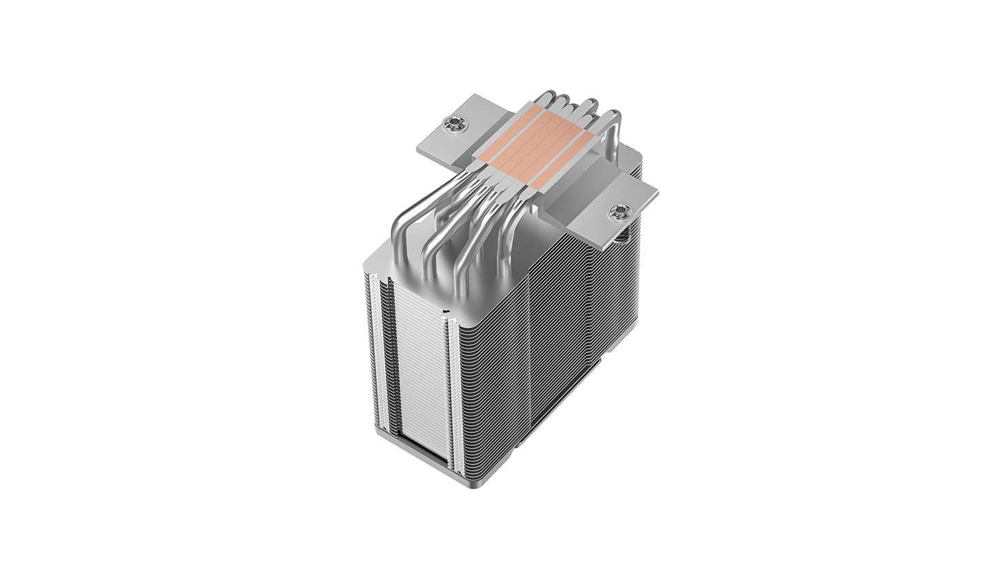 O AG600 mantém o estilo característico de aletas em matriz, ao mesmo tempo que introduz uma decoração refinada na tampa superior para um visual premium. Ele mantém a arquitetura consagrada de torre única com seis heatpipes, substituindo a iluminação RGB por um design minimalista, para um visual elegante e imponente.