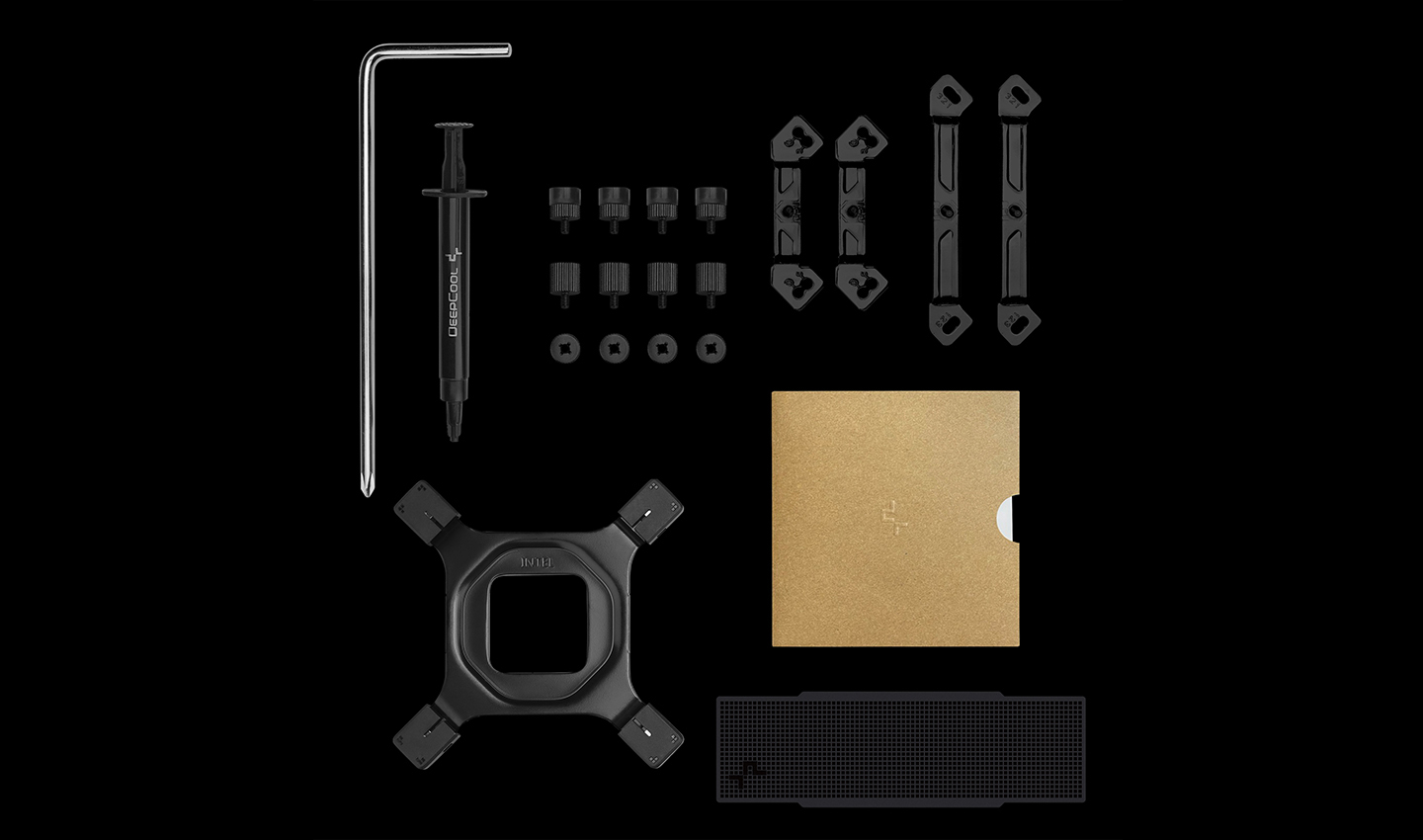 O kit de suporte de montagem, todo em metal, garante uma instalação fácil e resistente em plataformas Intel e AMD, oferece uma solução de montagem deslocada para sistemas multiplataforma e vem completo com ferramentas adicionais necessárias.