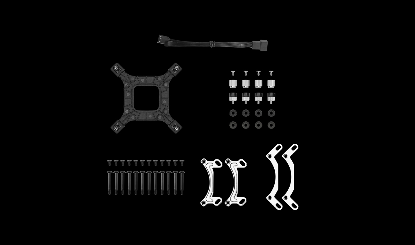 O suporte de montagem metálico proporciona um processo de instalação fácil que garante contato adequado e pressão igual em ambas as plataformas Intel e AMD. Tudo o que é necessário para montar o LE360 V2 ZERO DARK nas CPUs convencionais mais recentes está incluído na caixa, então é só instalar.
